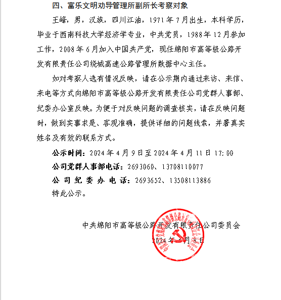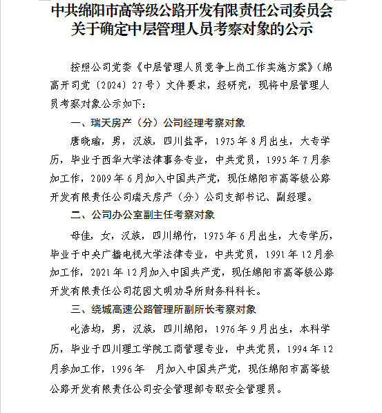 關(guān)于確定中層管理人員考察對(duì)象的公示